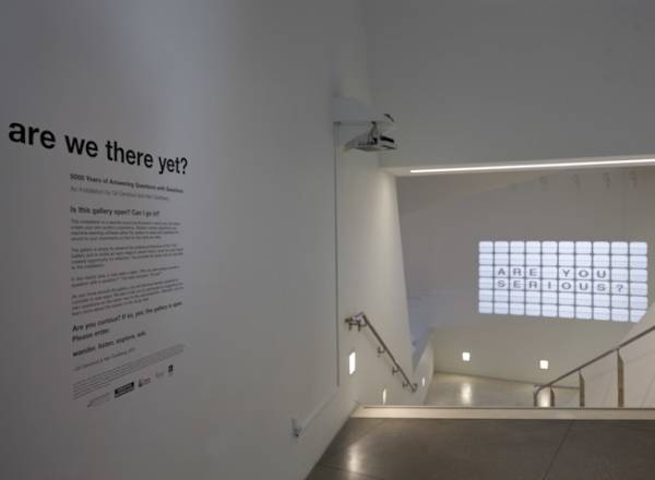 The installation Are We There Yet? by Bay Area artists Ken Goldberg and Gil Gershoni celebrates inquisitive impulse. An immersive sound environment, the installation poses questions from a variety of sources including the Talmud, literature, and popular culture. Questions vary based on visitors’ movement through the space.